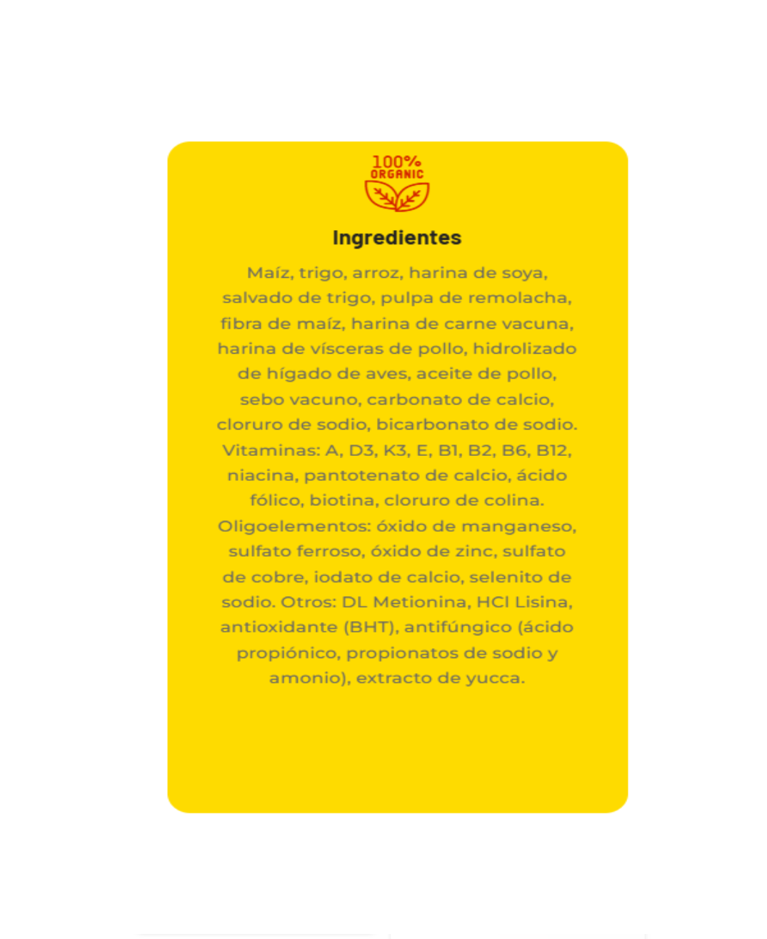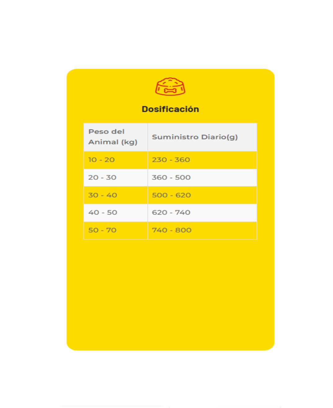 Alimento completo con una mezcla equilibrada de macro y micronutrientes de altísima calidad que cubre los requerimientos alimenticios de los perros mayores de 1 año de edad.