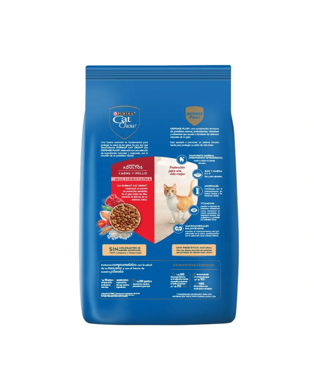 Una buena nutrición es fundamental para proteger la salud de los gatos. Es por eso que desarrollamos PURINA® CAT CHOW® CON DEFENSE PLUS®, elaborado con una selección de ingredientes naturales y mejorado, con la inclusión de un prebiótico natural.