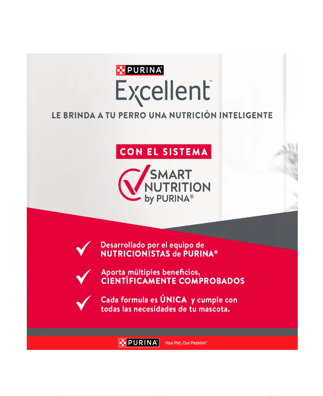 Los perros adultos tienen diferentes necesidades nutricionales que los cachorros o los perros maduros. PURINA® Excellent® mantenimiento Adulto ofrece una fórmula completa que incluye tocoferoles mezclados fuente de vitamina E, y sin colorantes ni saborizantes artificiales aportando un óptimo balance nutricional y un sabor irresistible.