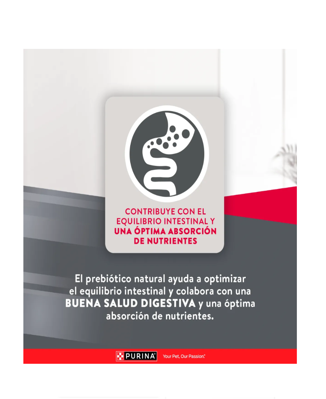 ÓPTIMA ABSORCIÓN DE NUTRIENTES La calidad de sus ingredientes de alta digestibilidad ayuda a garantizar un óptimo aprovechamiento de los nutrientes, generando heces pequeñas y firmes.