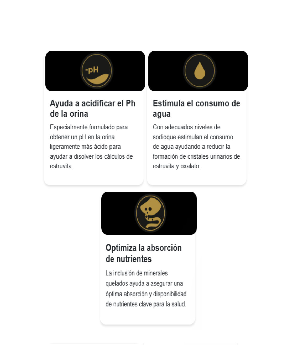 Con una proporción adecuada de sodio para fomentar el consumo de agua, lo que ayuda a reducir la formación de cristales urinarios de estruvita y oxalato.