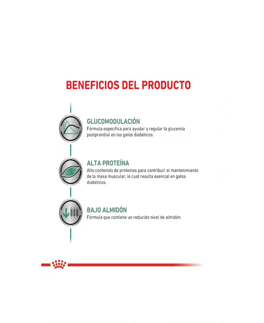 Alimento para gatos adultos, formulado para ayudar en la regulación del aporte de glucosa (Diabetes Mellitus). Este alimento se caracteriza por su bajo contenido de hidratos de carbono con liberación rápida de glucosa. Fórmula específica para ayudar a regular la glucemia postprandial en los gatos diabéticos.